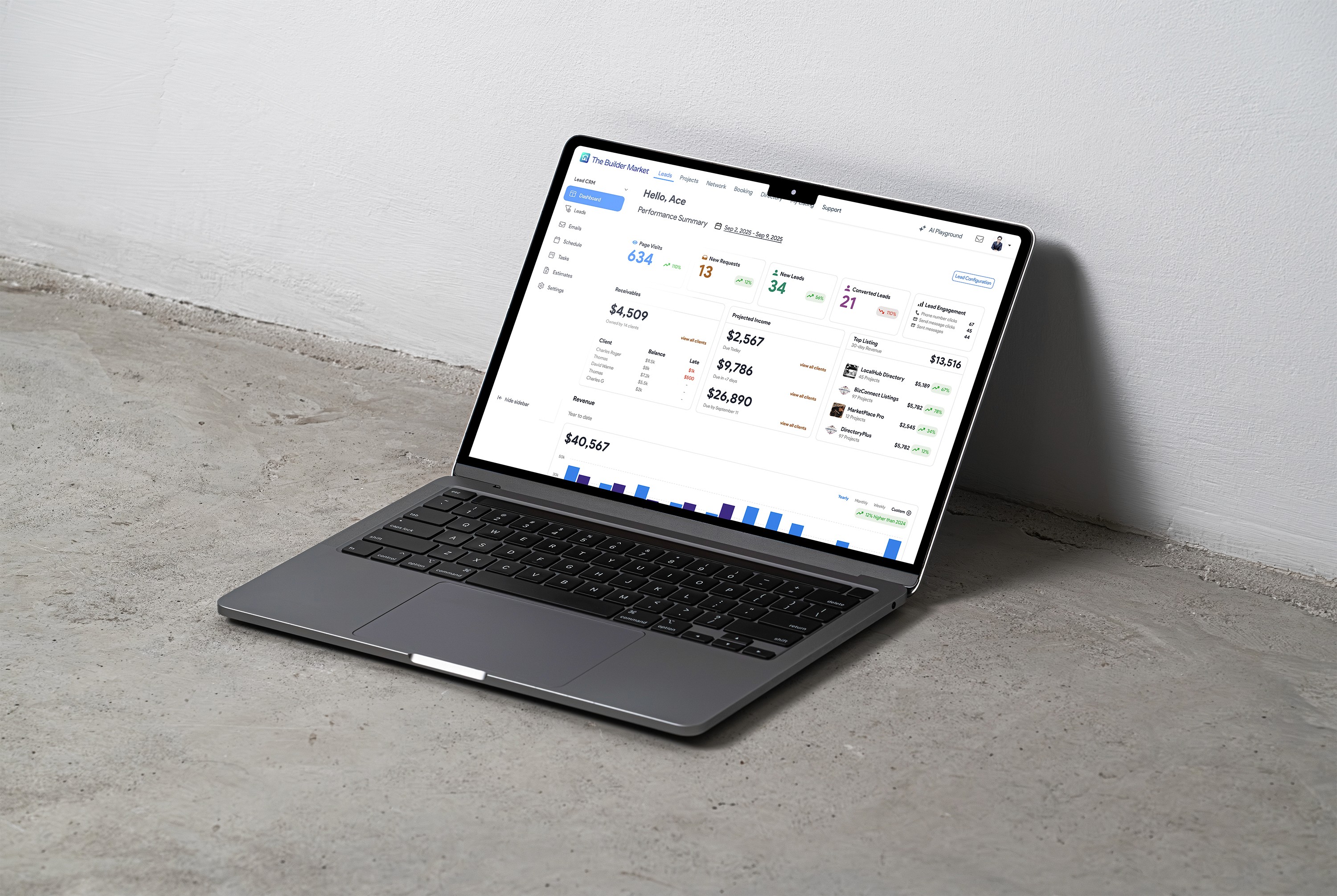 Scaling contractor marketplace 133x through designing Dashboard and Lead Pipeline—achieving 60% weekly user retention.