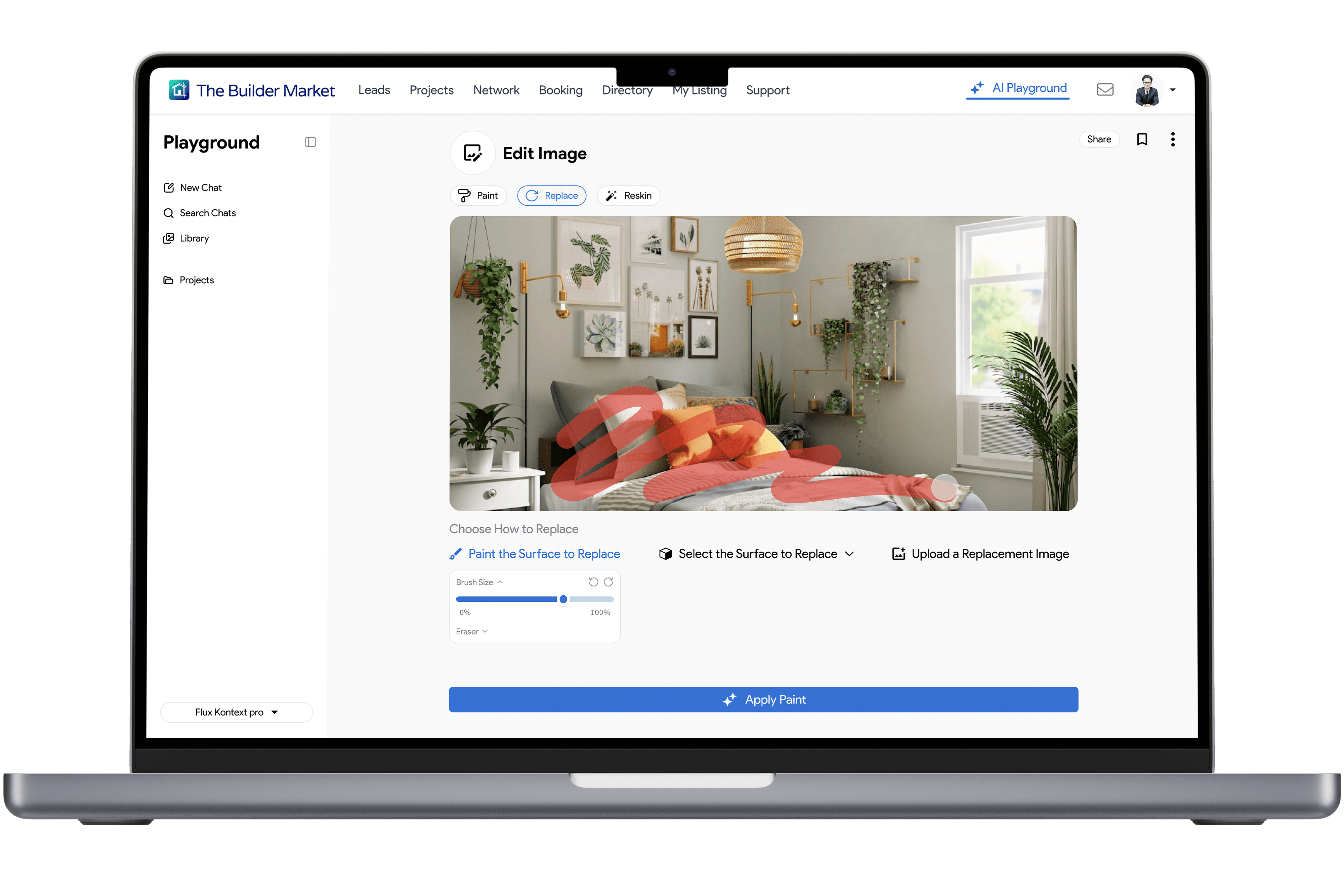 The Builder Market is a B2B/B2C home services marketplace connecting contractors with homeowners. The project included redesigning Business Listings, Lead Pipeline, Pro Dashboard, and an AI Playground assistant.